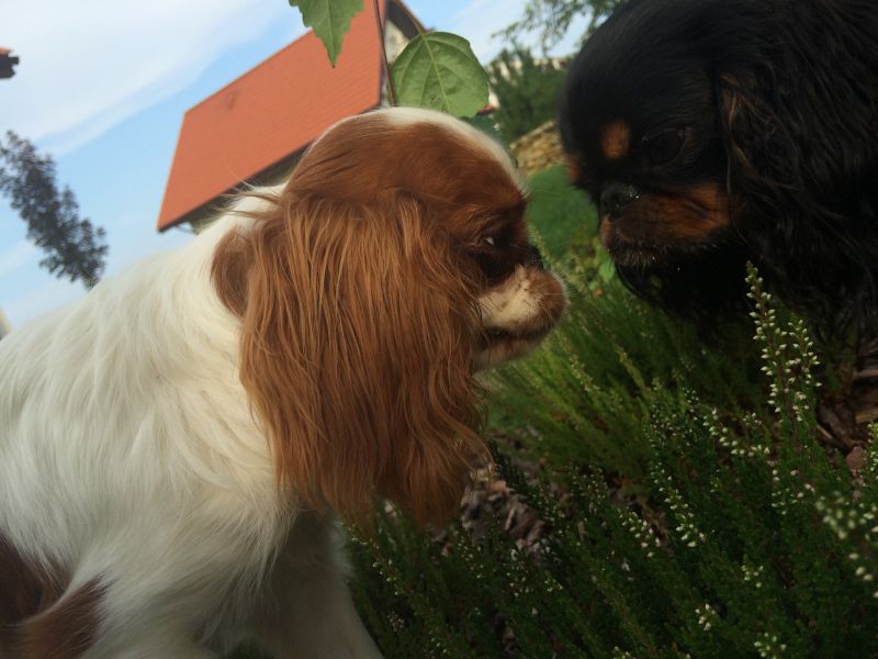 Cyguś odpocząłby od Intruza.. Toleruje nowego kumpla całkiem dobrze- pozwala sobie obwąchiwać nos w trakcie karmienia smaczkami i nawet nie warknie na taką poufałość, chociaż chwilami widzę, że utrata pozycji jedynaka jest mimo wszystko trochę przykra.. Staram się koić rozdarte serduszko.