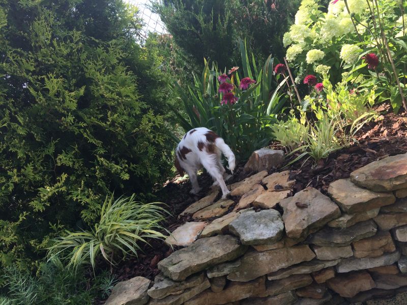 Posadziłam wczoraj na szczycie pagórka jałowca procumbens. ładnych kilka lat minie, zanim podrośnie i zacznie się zwieszać z murka, ale juz stanowi fajną plamkę
