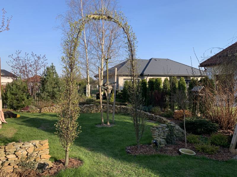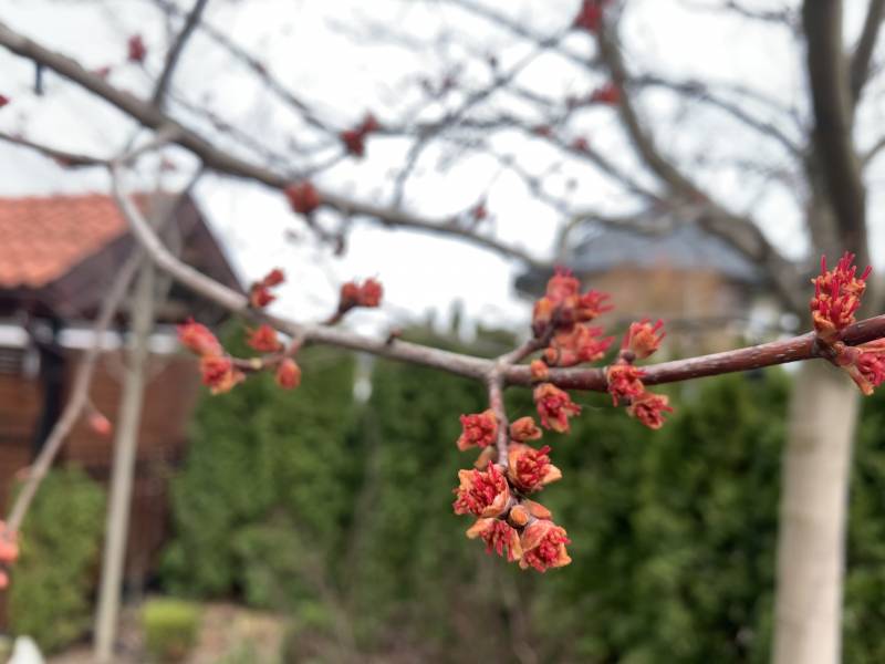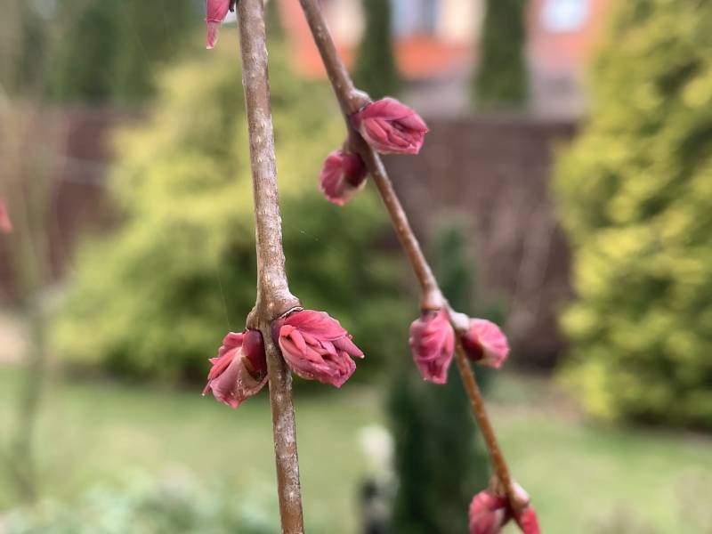 Do listy drzew, jakie mam, dodaj ambrowca, grujeczniki płaczące i gatunek, klon griseum jako ciekawostkę, wiśnię Kanzan i dwie odmiany jabłonek ..