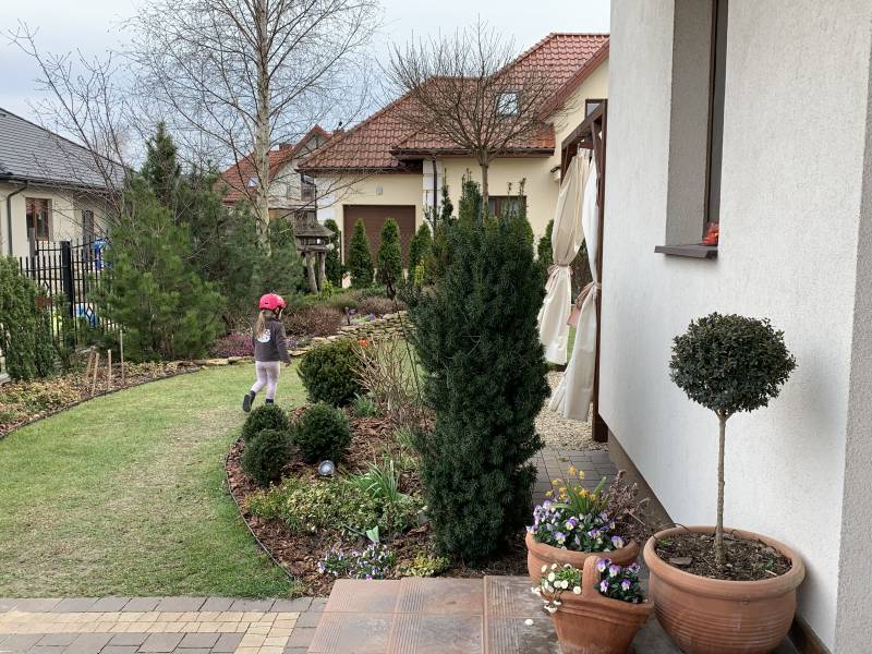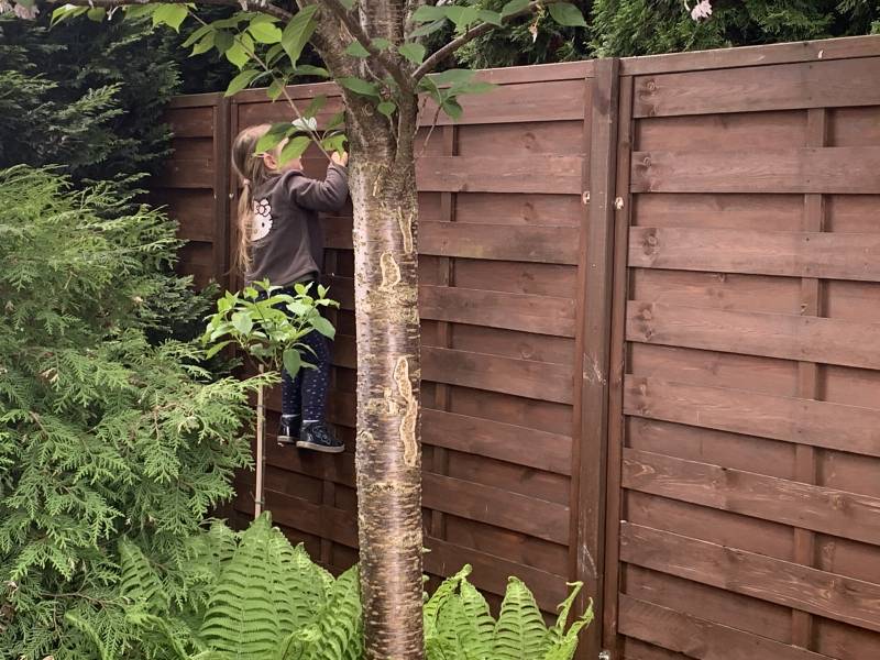 Tak mam wesoło na codzień. Ogrodzenie ma 2.20 chyba. osłania nas od nielubianej sąsiadki. Jak Szefowa wspięła się pierwszy raz, zajrzała górą i z zachwytem mówi „ mama zobacz, tu tez mamy ogrodek”
