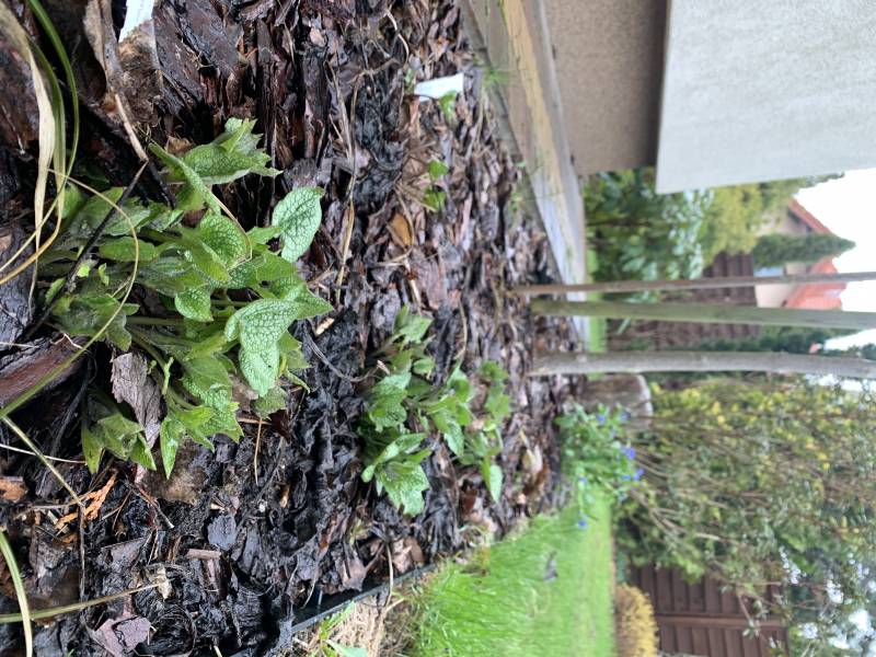 Variegate trudno focić, bo rosnie z pokrzywami.. Szefowa kilka razy weszła na pagórek i podeptała startujące kły, a ze pokrzyw unika, to postanowiłam uprawiać je razem.