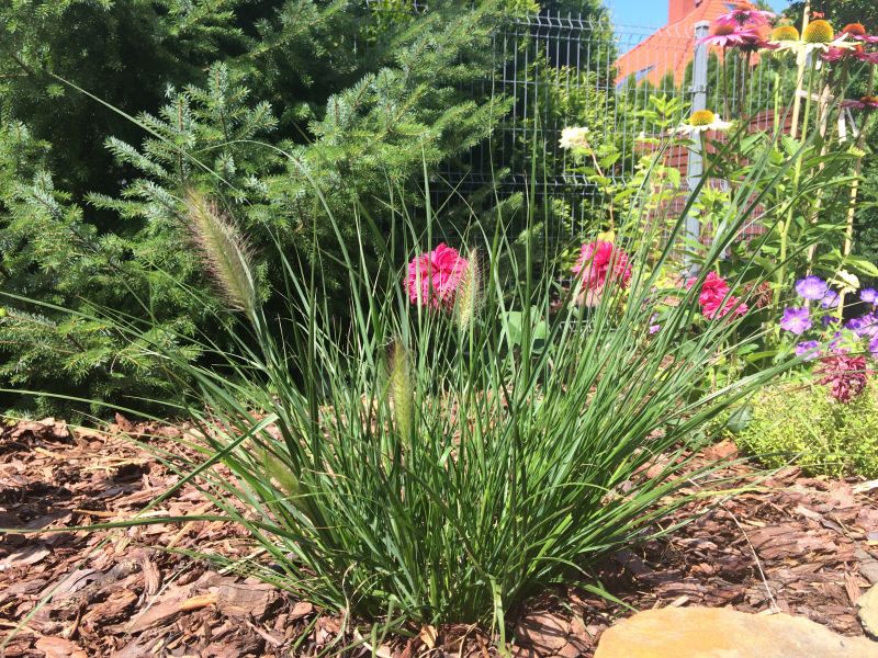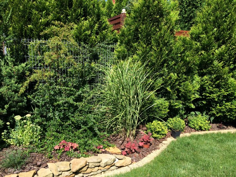 Wiedziałam, że miskanty późno startują i liczyłam się z tym- nie potrzebowałam nic zimozielonego tylko jakiś miły akcent.. Skoro jednak Helgi dorastaja mi do kolan, to trudno nazwać to żywopłotem.