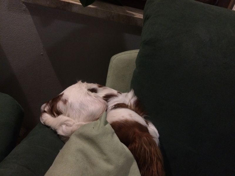 ..a MArviś drepcze i melduje się w legowisku Cygusia. Budzę się już z dwoma psami