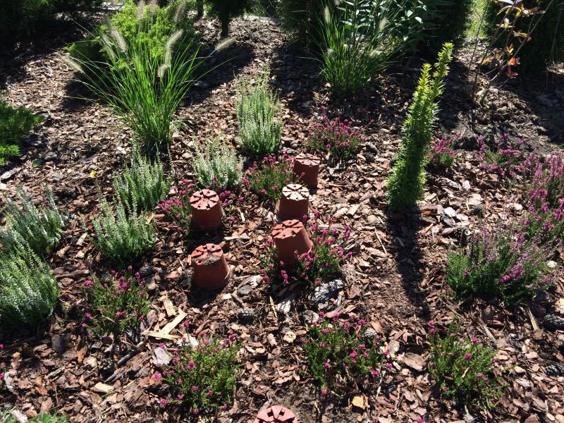 Kwitną w różnych kolorach, pędy też odrobinę się różnią, do tego jasnoróżowe raczej rosną płasko, a ciemnoróżowe ewidentnie krzaczasto. Oczywiście mnie to wnerwiało..i przesadziłam te ciemne na tył. Nie pierwszy raz przesadzam wrzosy, ale zawsze zadziwia mnie, że takie małe krzewinki mają takie brył korzeniowe- to chyba dobrze, znaczy, że są zadowolone u mnie, skoro się tak korzenią..