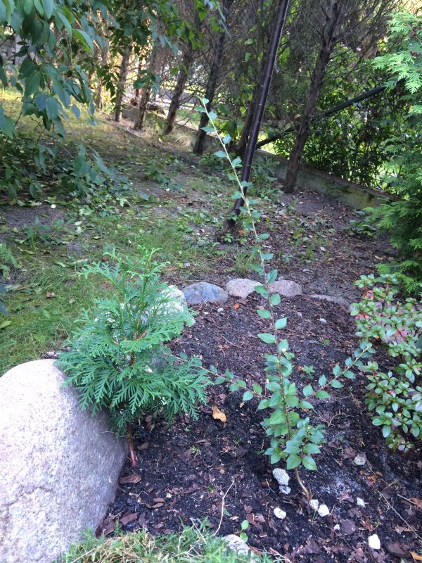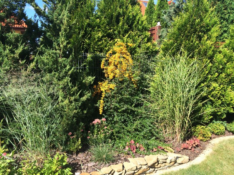 Dobrą decyzją było wycięcie Blue Arrow, posadzonych kilka lat temu.. za to dobrą decyzją kilka lat temu było posadzenie przepięknego cyprysika groszkowego- jakże ja go lubię!! Urósł cudownie przez te kilka lat, a taki był wysoki i szczuplutki, ażurowy- już wtedy jednak był jednym z moich iglakowych faworytów