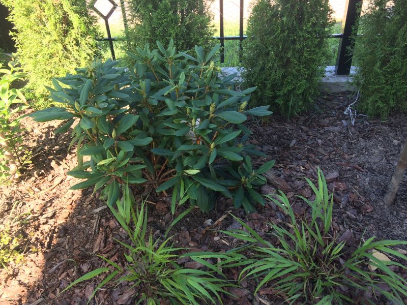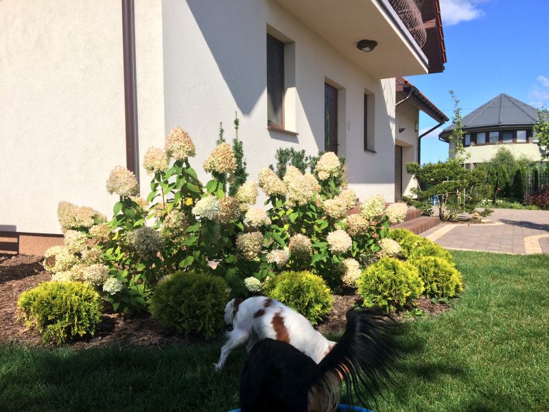 W ogóle to przechadzam się dookoła domu i zachwycam wszystkim- bardzo zadowolona jestem z roślinnych decyzji w tym roku- czegoś się pozbyłam, robiąc miejsce na inne, bliższe sercu rośliny. Cały ten rodkowo-grabowo-palmowy zakątek to wiosenne wycięcie jałowców kolumnowych, na które zasadzałam się już 2 lata, a muratorowa budowa ogrodzenia jedynie pomogła w podjęciu decyzji. Zresztą przez zimę zdecydowałam ostatecznie, a wiosną ekipa z Muratora była mocno zaskoczona, jak poleciłam karczowanie iglaków, żeby płotek łatwiej się stawiało. Kilka razy się upewniali, czy jestem pewna, że mają ciąć..a ja już w grudniu miałam graba wybranego