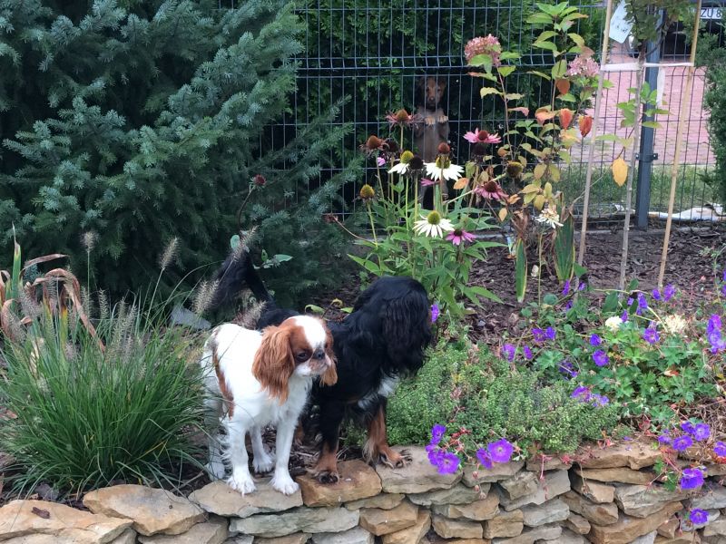 nieliczne jeżówki dały radę przetrwać entuzjazm psiaków.. Pogrupowałam je przez Limką i mam nadzieję, że to zwiększy ich szanse..może Projektanci będa biegać po rozwidleniach, jak do tej pory przebiegały ich zwyczajowe trasy..