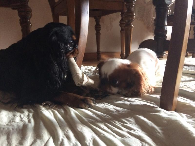 Nie widziałam tego akurat, ale podobno była sytuacja, że Cyguś spał w legowisku, Marviś na podłodze tuż obok, a Tosiek przechodził obok- Marviś rzucił sie na niego i odpędził w kąt pokoju zdziwko