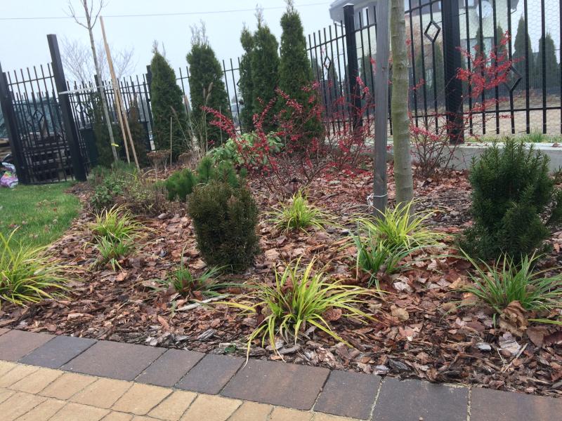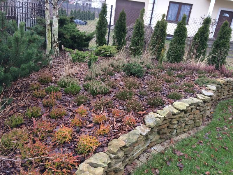 kompozycja rośnie tu chyba 2gi albo 3ci sezon. Jak się te nieduże berberysy i kosówki rozrosną, to będzie jeszcze piękniej