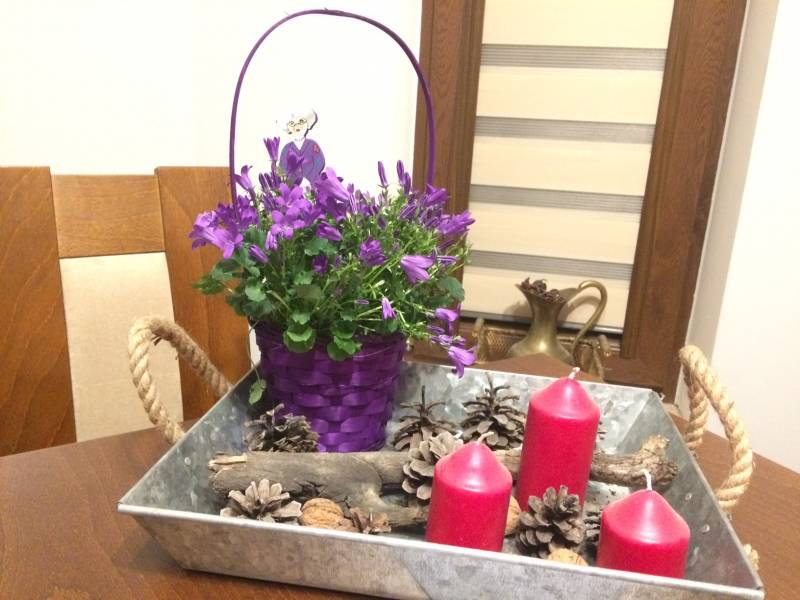 nie do końca ufam folii, którą jest wyłożony koszyk wewnątrz- boję się postawić bezpośrednio na stole.. Chwilowo mam mały zgrzyt kompozycyjny :silly: , ale w weekend dopracuję to sobie na spokojnie, bardziej w duchu nadchodzącej (musi się zbliżać na pewno..) wiosny.