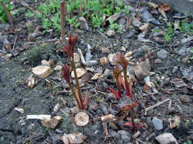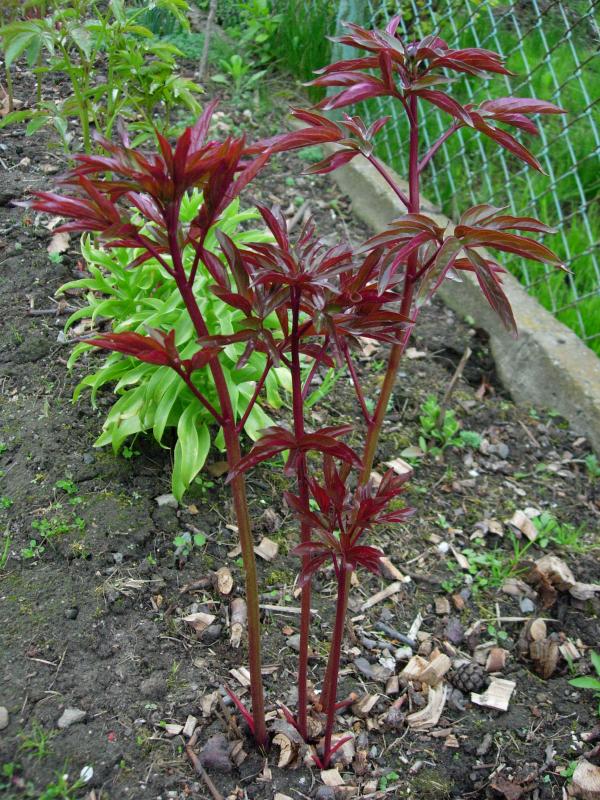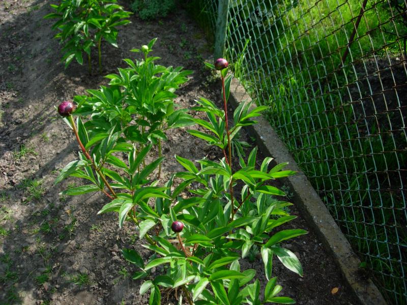 Moje „sadzonki” w pierwszym roku dość szybko straciły jedynego 10-cm listka. Zaznaczyłam patykiem miejsce i podlewałam co jakiś czas. W połowie czerwca nawiozłam superfosfatem i siarczanem potasu, ale tylko troszeczkę (1/3 dawki, jaką podałam). W następnym roku liść był już normalnej wielkości, a w tym roku zakwitły. Te peonie dla Ciebie na pocieszenie i pamiętaj, że u mnie rośnie taka, która Ci się podoba.
