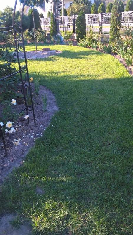 Widzisz Ewuniu ja nienawidzę pielenia ścieżek ,więc wymyśliłam sobie ,że będą takie zielone ,trawiaste i ,żeby nie wycinać rosnących już drzew po poprzednikach to wymyśliłam sobie ,że będą takimi naturalnymi ścianami zielonych pokoi.Szczelnie obsadzone rabaty wzdłuż drogi narzucają mi kierunek robót ,muszę zaczynać od drogi i posuwać się w stronę podwórka ,no i męskie ramię jest mi tu nieodzownie koniecznie potrzebne