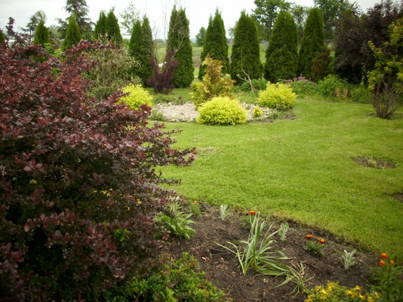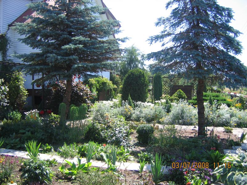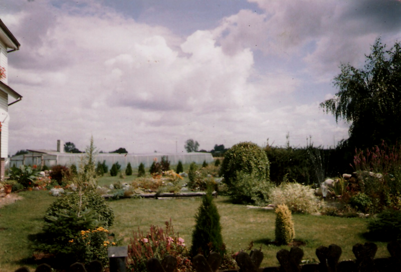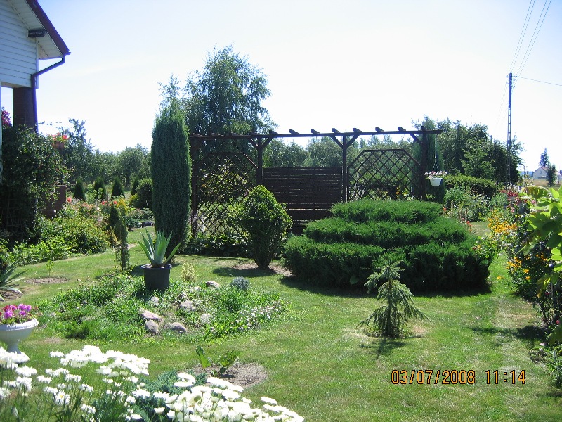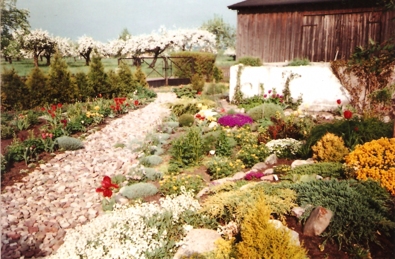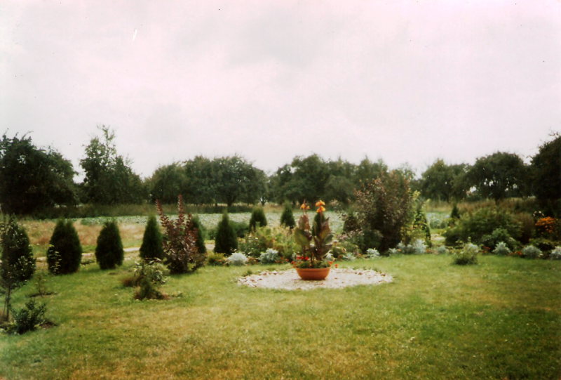 W latach dziewięćdziesiątych gosp. przeszło na męża i na mnie, od razu postawiliśmy nowy dom i postanowiłam, że w około tego domu musi być ogród. Nie od razu zagospodarowałam przeznaczone miejsce roślinami gdyż na ogród nie miałam wolnego czasu więc musowo było zasiać trawę.