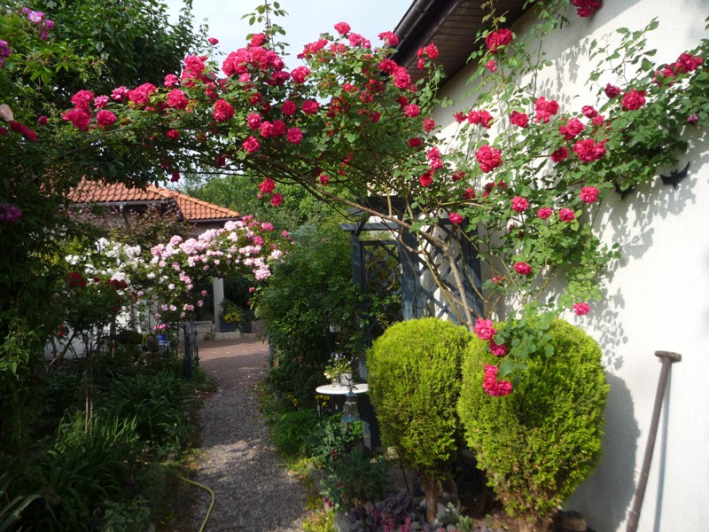 Róże fantastyczne ,ale i innym elementom ogrodowym niczego nie brakuje ,podziwiam żywopłoty i romantyczne dodatki :bravo :bravo :bravo