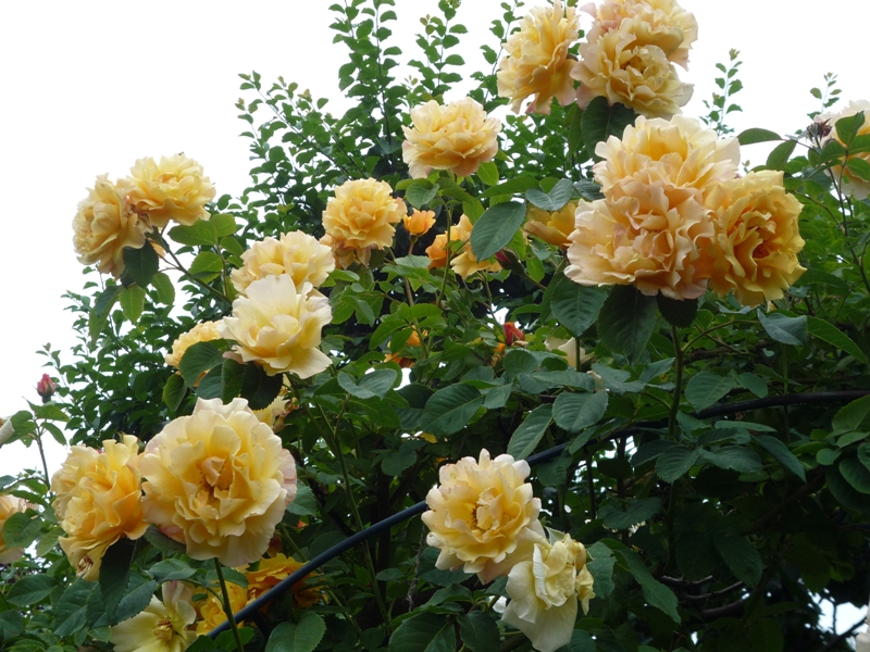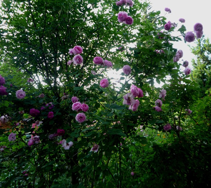 W tym roku ją z tych krzaków wyciągnęłam i puściłam górą na pergoli gdzie w zeszłym roku rósł duży krzak róży Westerland, niestety tej zimy przemarzł do kopczyka.