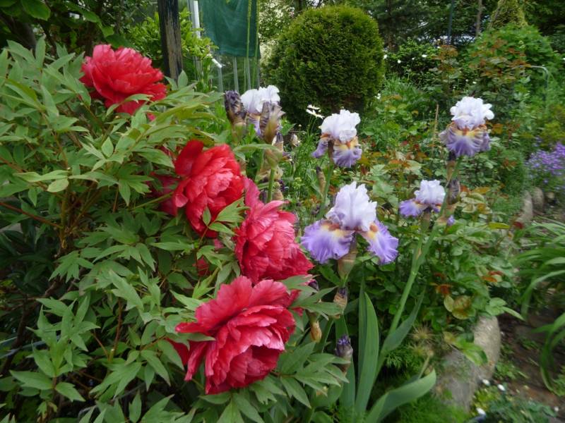 i ostatnie kwiaty piwonii, to ,że jest zimno kwitnienie trochę się przedłuża, na szczęście