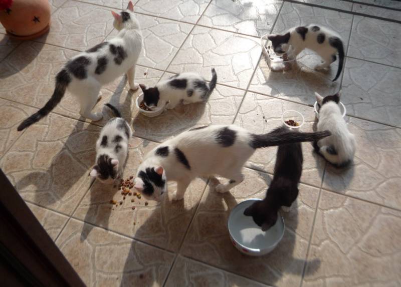 To, jest tylko część mojej gromadki 4 kotki nie przyszły na przegryzkę, po śniadaniu.