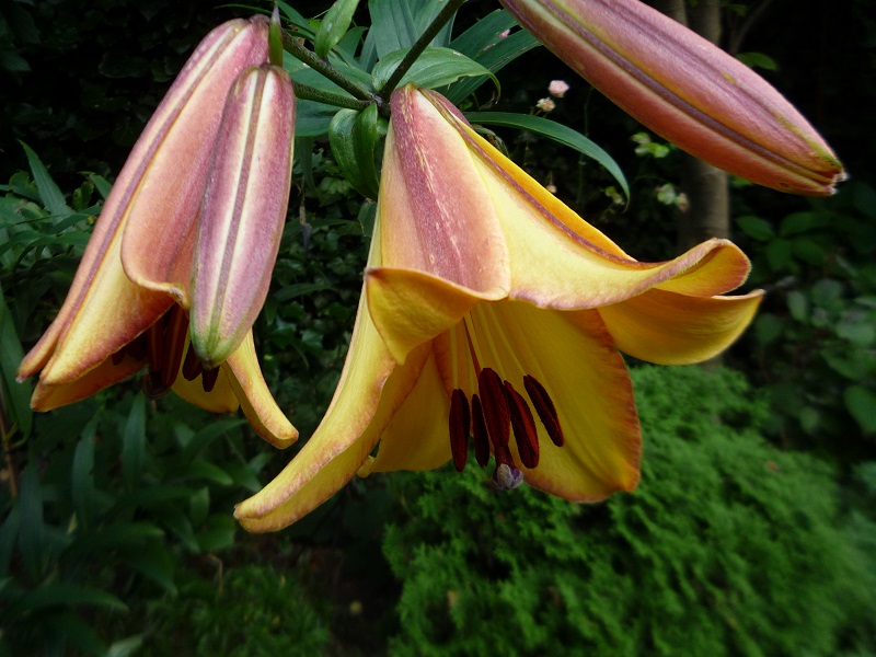 Nelu, te jasne trąby jakoś najlepiej się rozrastają .Rosną przy bukszpanie ja myślę, że korzenie bukszpanu zabierają nadmiar wody