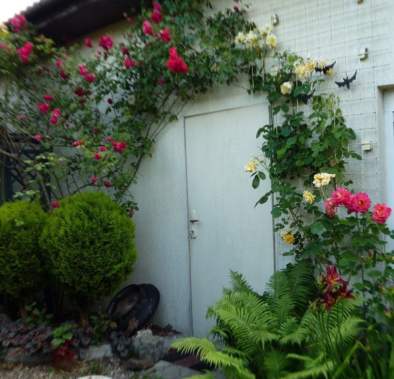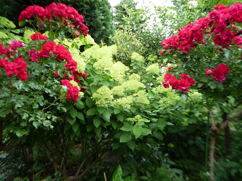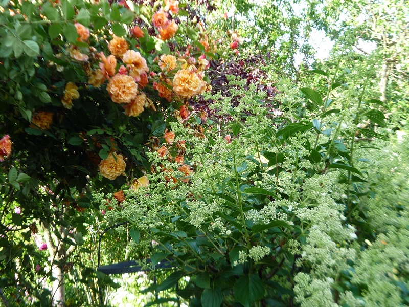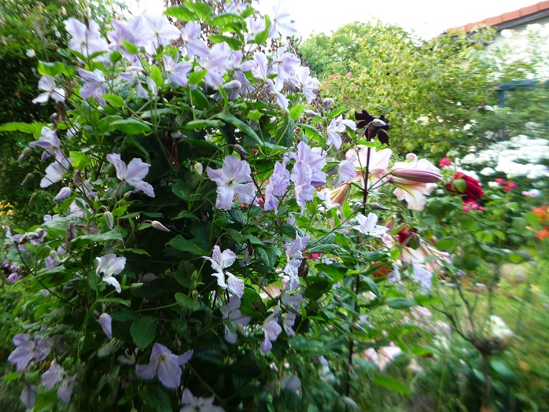 ale jakoś sie nie zgrały z kwitnieniem.,Obydwie spinają sie bardzo wysoko a przy silnym wietrze ciągle boję sie ,że zachowają sie jak parasol i fikną.