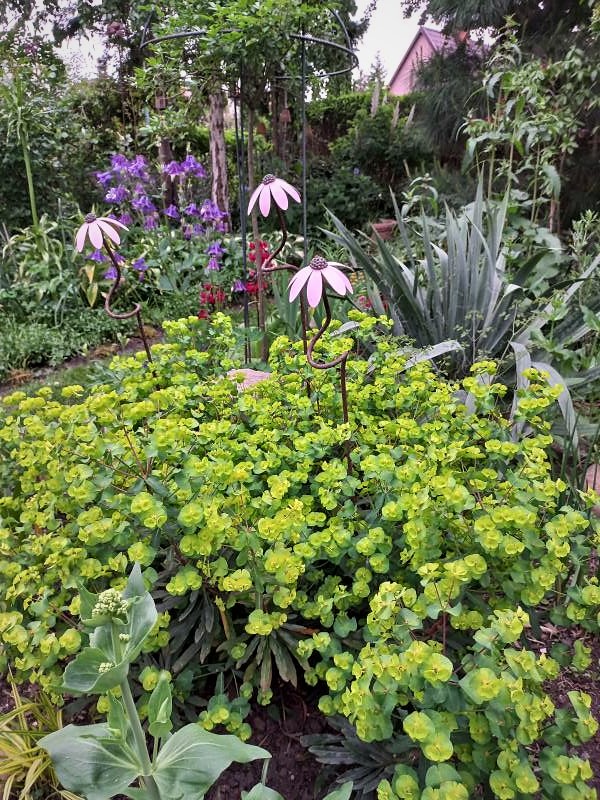 teraz rośnie na ścieżce odgrodzony krawężnikiem od rabaty i nawet ładnie wygląda - niech sobie rośnie :owady