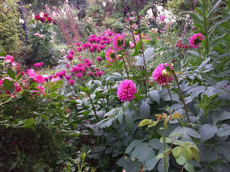 zakwitła tez dalia Kenora Macop ,która w tym roku jest bardzo wysoka aż smusiła mnie do obcięcia gałęzi iglakowi.