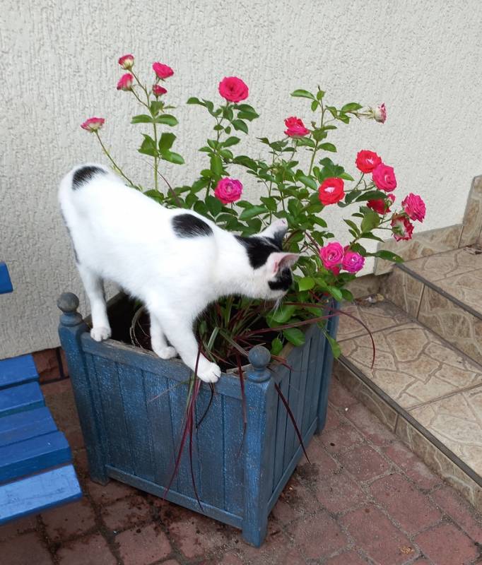 Tak tak, walczące koty potrafią narobić szkód nie tylko sobie ale i w ogrodzie, ale za to bez nich ogród zostałby zjedzony przez podziemie więc takie szkody można im wybaczyć :kot