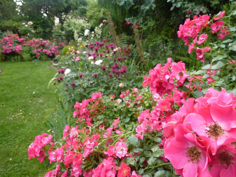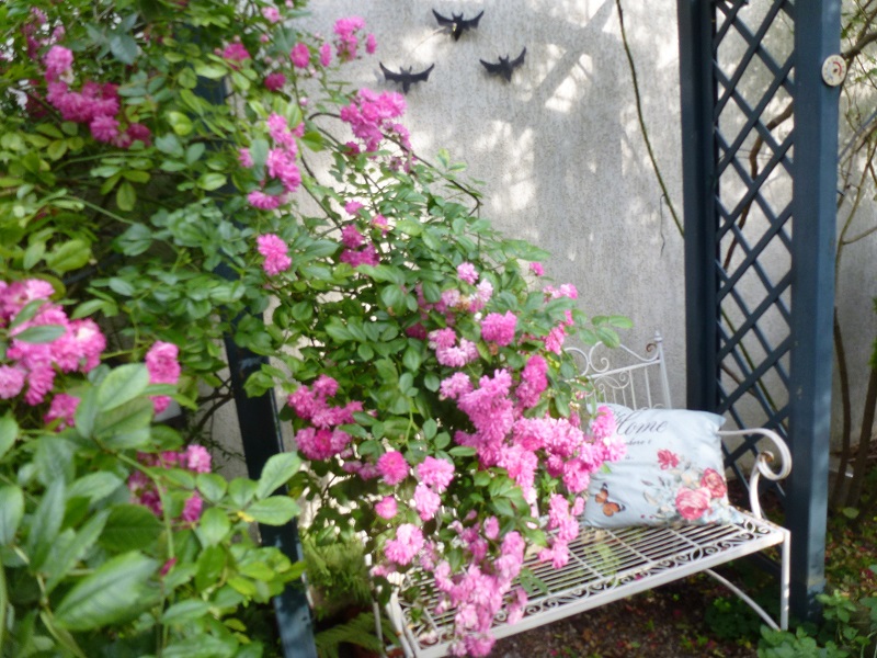 Zapraszam do ogrodu na :kawa pospacerować iprzysiąść na ławeczce w cieniu róż .