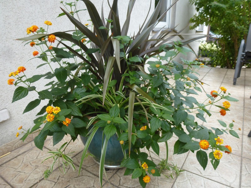 Czy pamiętacie donicę pokazaną wczesna wiosną teraz wygląda ,tak