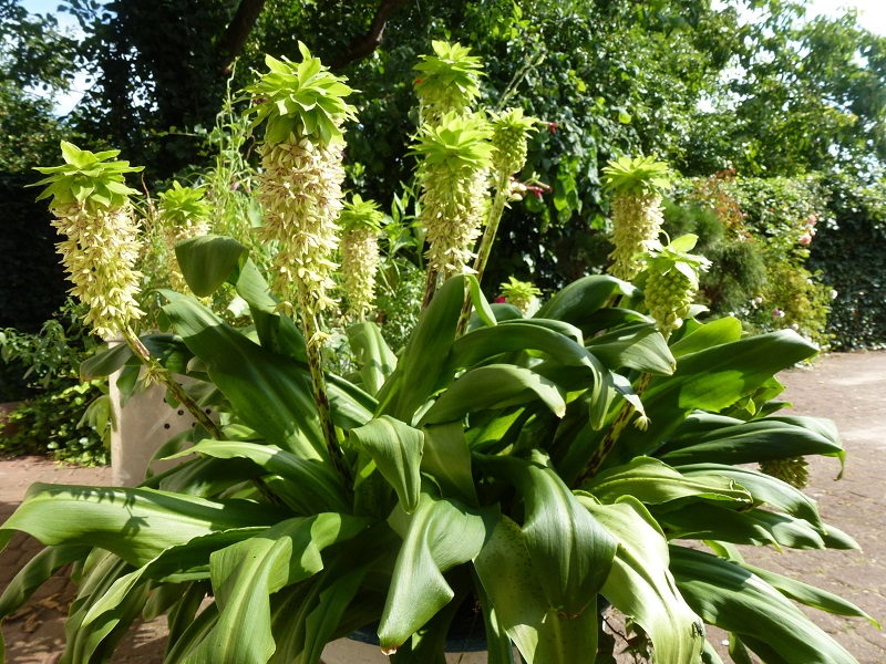 Eukomis w gruncie rośnie juz dwie zimy a kwitnienie ma trochę później ,bo późno wystawia wiosną . głowę chyba z obawy na mróz..