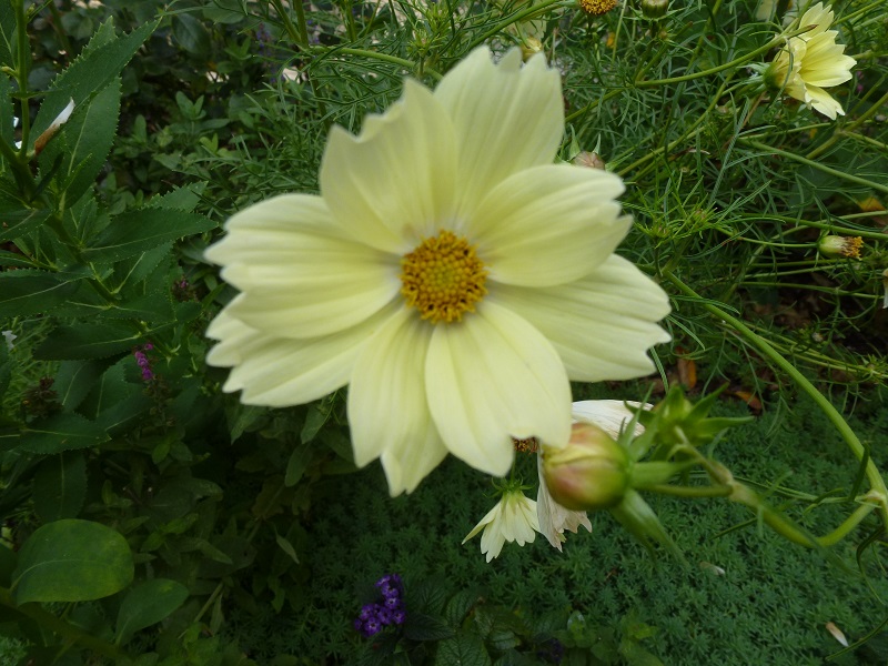 Kosmos żółty -w tym roku w ogrodzie kwitnie tylko kosmos o żółtym kolorze.