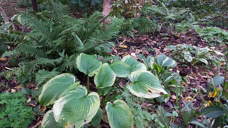 Pięknie Ci rosną hosty i paprocie, trójsklepki wolą słoneczne stanowisko.