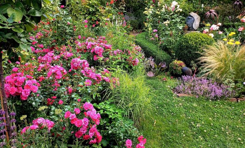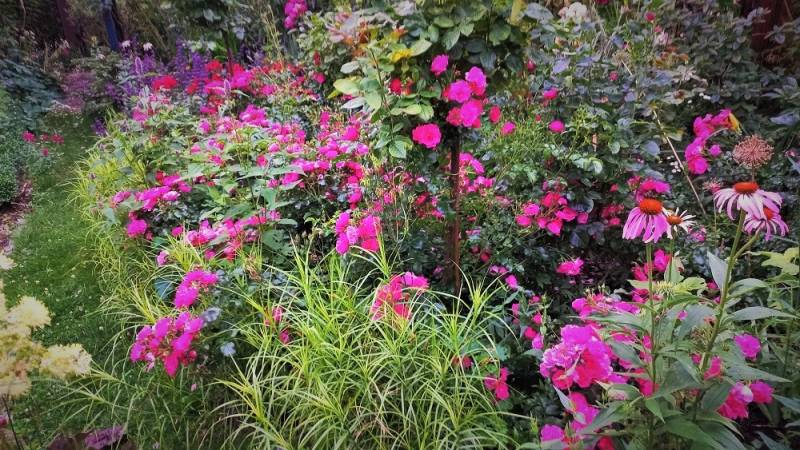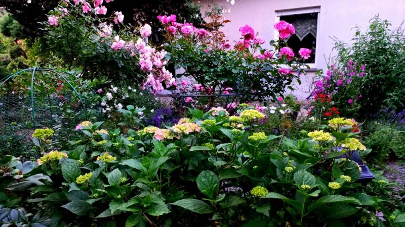 Róże hortensje wszystkie te rośliny powodują ,że w ogrodzie robi się "gęsto" i ładnie