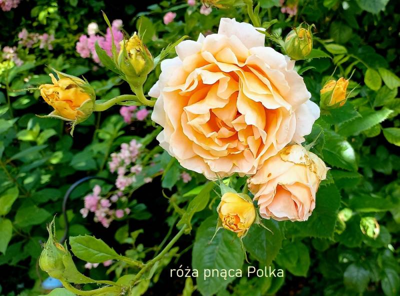 a pnąca róża Polka jest różą subtelną o delikatnym kolorze i pięknym kształcie kwiatu