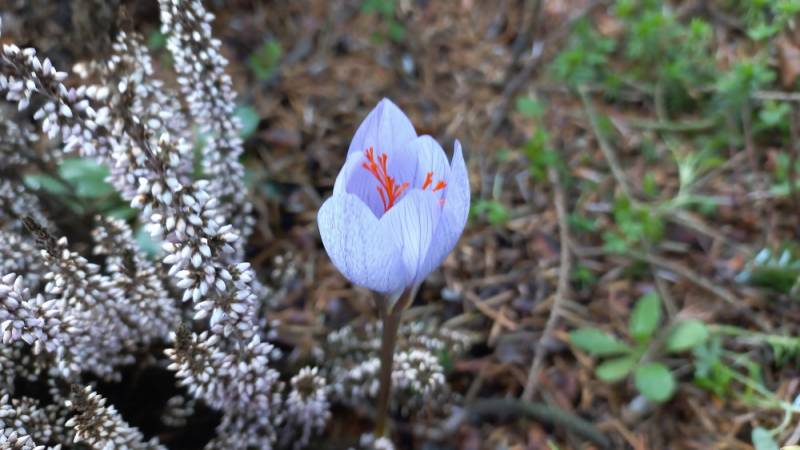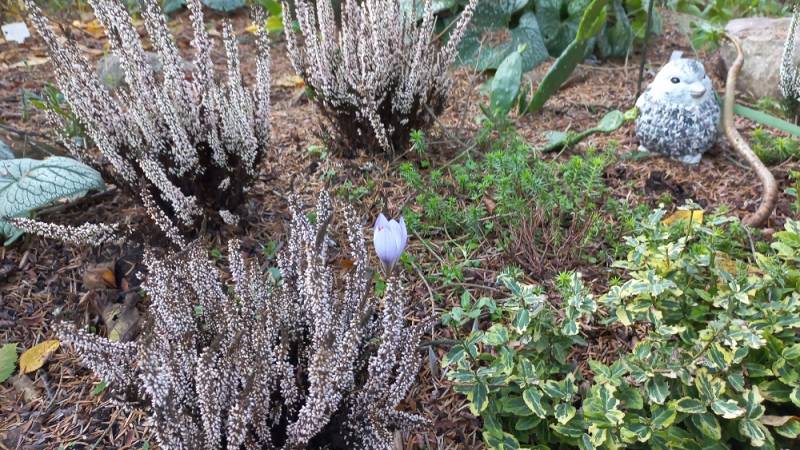 zakwitł jeden krokus jesienny /chociaż cebulek kupowałam kilka jest tylko jeden i to posadziłam na nim wrzos polewkamax