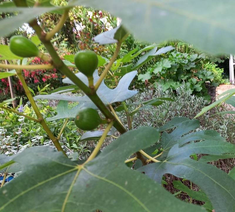 Figa - mała sadzonka wciśnięta mi przez Wojtka staje się dużym krzaczkiem, ma sporo owoców . :mniam