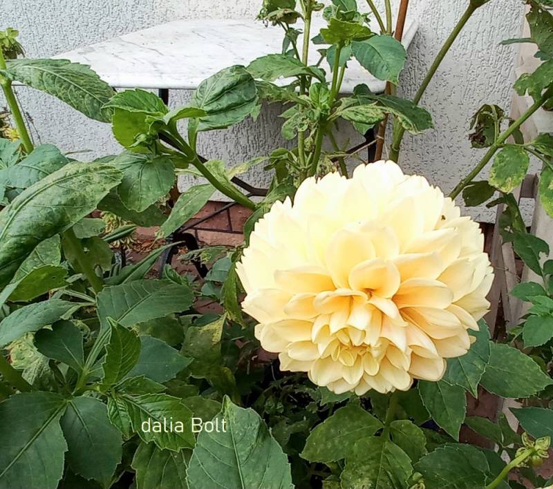 z tego samego źródeł jest dalia Bolt z żółtego koloru kulki z głębi płatków delikatnie wybija sie pomarańcz