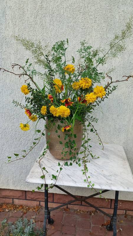 śliczna dalia ale rośnie w donicy i krzaczek układa się swobodnie /brak miejsca w ogrodzie/ .