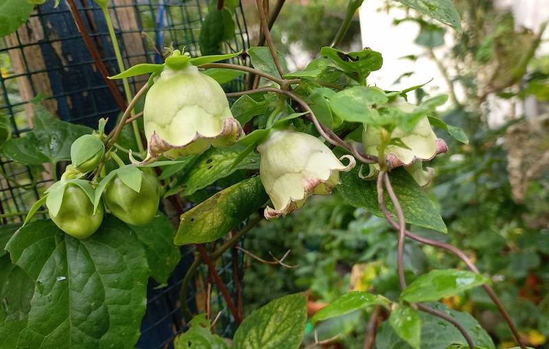zaczyna kwitnienie pnącze dzwonkowiec dopiero zwróciłam na niego uwagę jest u mnie pierwszy rok