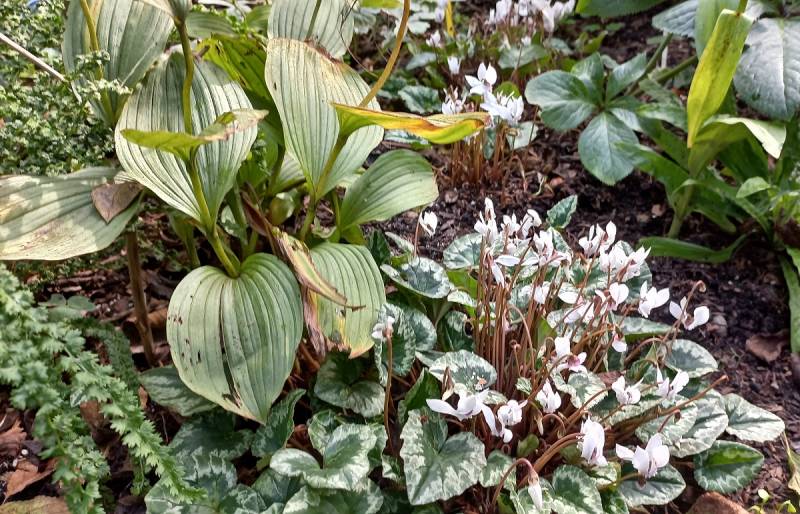 w tym roku sasanki mają takie wielkie liście ,że zakryły hosty