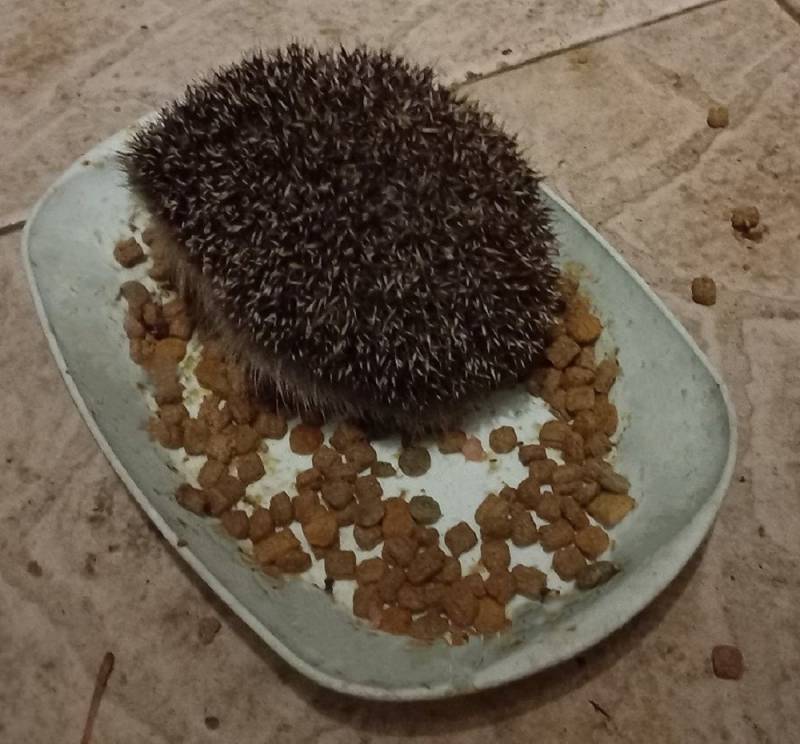 a wczoraj wieczorem karmiąc koty zastałam przy ich misce malutkiego jeżyka