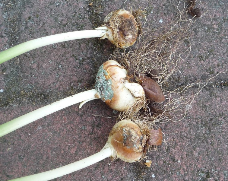 Po kolejne – twoja diagnoza odnośnie cebul jest trafna – trzeba je zaprawiać przeciew chorobom grzybowym. Te sprzedawane na kilogramy (i na sztuki też), często, żeby obniżyć koszty nie są zaprawiane i rezultat jest taki jak na zdjęciach.
