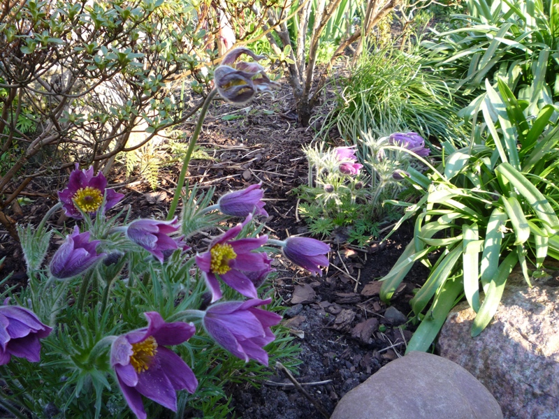 U mnie dopiero rozkręcają się sasanki ,które same się wysiewają w kamykach na ścieżkach.