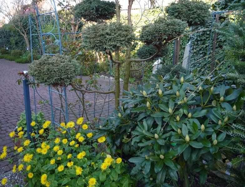 Maju u ciebie kwitną omiegi a u mnie dopiero pojedyncze pączki się wychylają, żywopłocik bukszpanowy przy ławeczce do pozazdroszczenia (bardzo podobają mi się w ogrodzie obwódki z bukszpanu-czemu tak wolno rośnie :( ) Ja swoje RH jak wyglądają ,,blado'' traktuję magiczną siłą, zawsze działa.