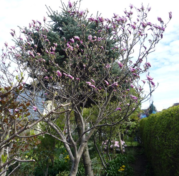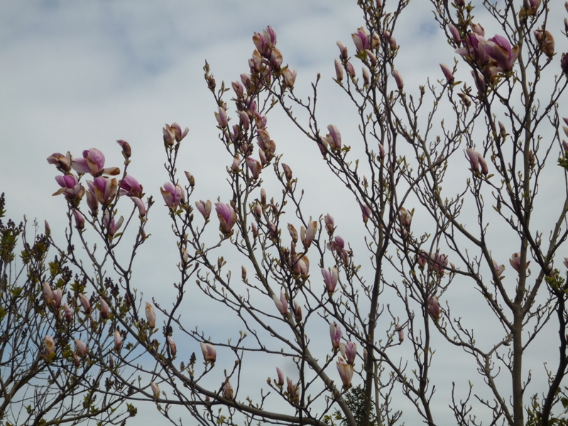 Magnolie przez ten ziąb nie mogą się rozwinąć.