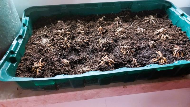 a więc po namoczeniu posadziłam je 28.11.2025 w dwóch opakowaniach /trochę dokupiłam ale większość to kłącza zeszłoroczne /