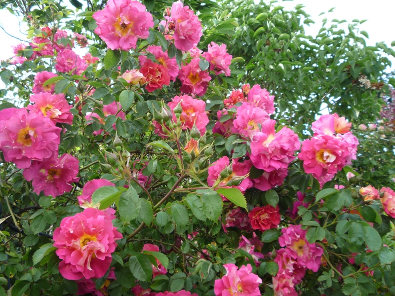 róża Lykkefund ogromna pnie się po iglaku druga rośnie przy żywopłocie i też jej nic nie brakuje.kwitnie długo ale tylko raz