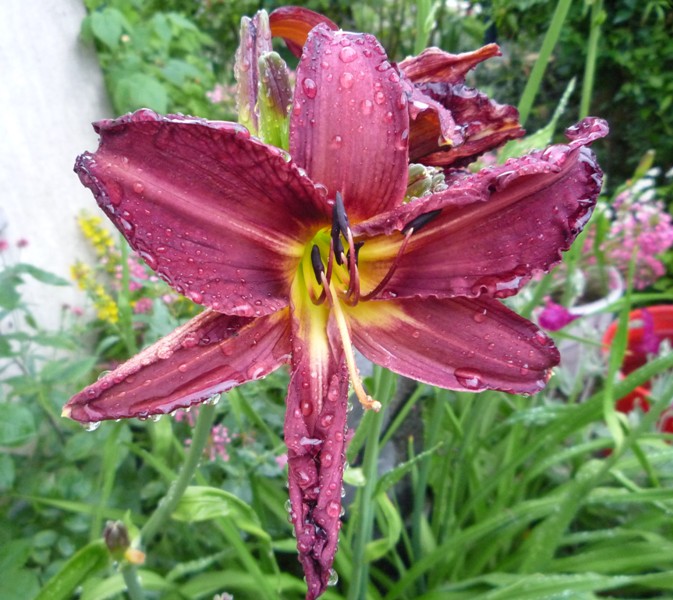 Zakwitł też pierwszy liliowiec im też deszcz nie straszny gorzej z irysami niektóre podgniwają.