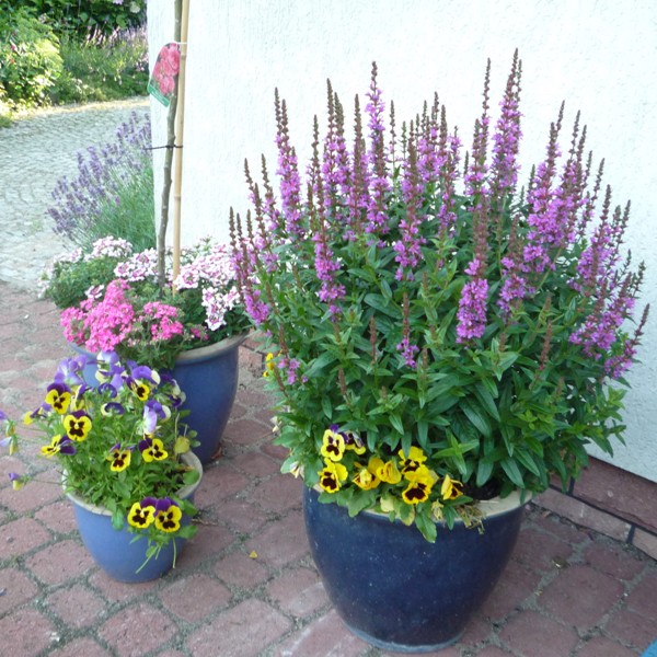 Werbena wysiewa się w kostce brukowej i dodatkowo jest dekoracją . Wiosną w skrzynkach sadzę drobniutkie bratki ,które po przekwitnięciu usuwam a Eukomis rośnie już dojesieni