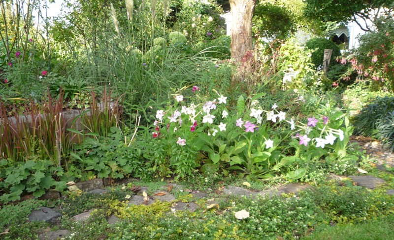 Kamienne ścieżki wśród kwiecistych rabat