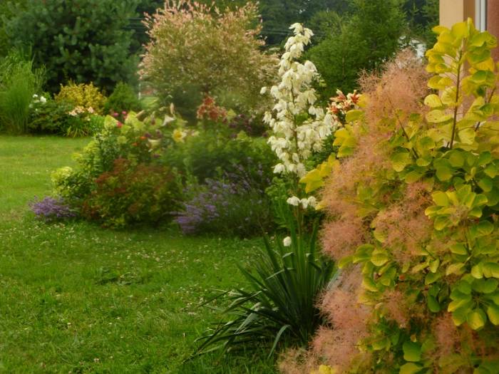 Sosny, magnolie i kamień polny....ogród zwyczajny. |